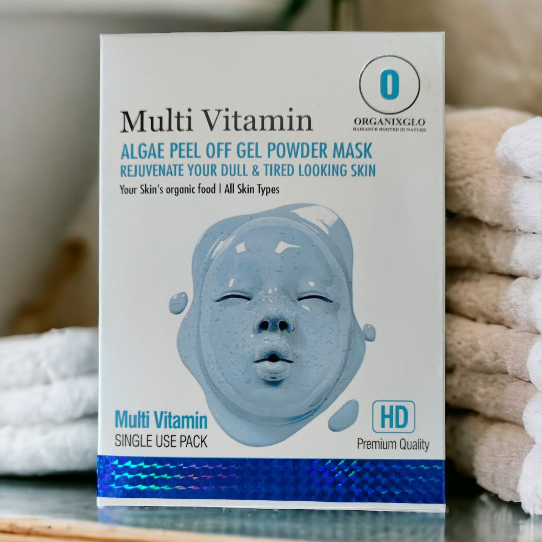 The Multi Vitamin Algae Peel-Off Gel Powder Mask offers a spa-like treatment in the comfort of your home. Its nutrient-rich formula and innovative delivery system ensure that your skin receives the best care possible, leaving you with a brighter, smoother, and healthier complexion. Perfect for regular use or as a pre-event treatment, this mask delivers professional-grade results every time. Embrace the power of vitamins and algae with OrganixGlo and reveal your skin's true radiance.